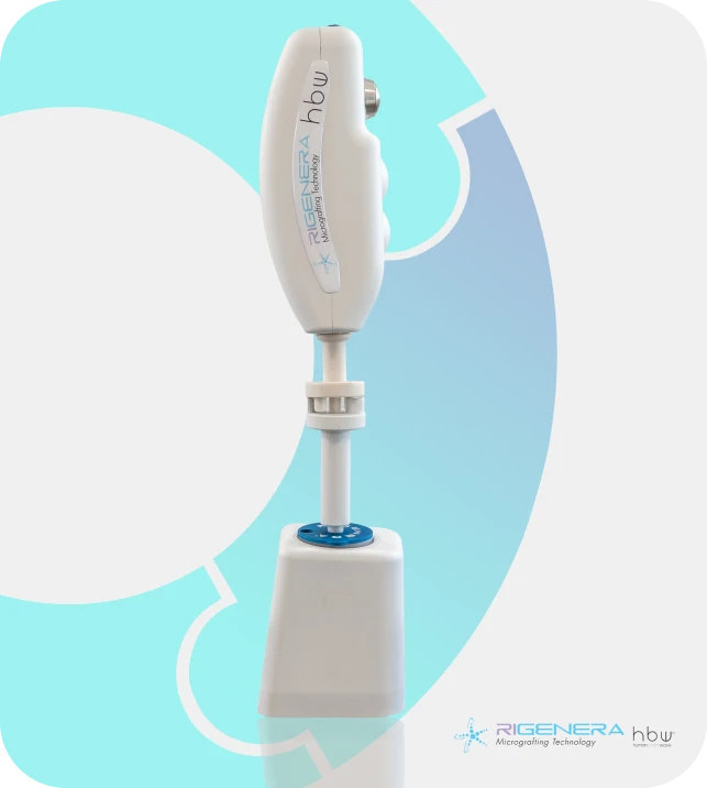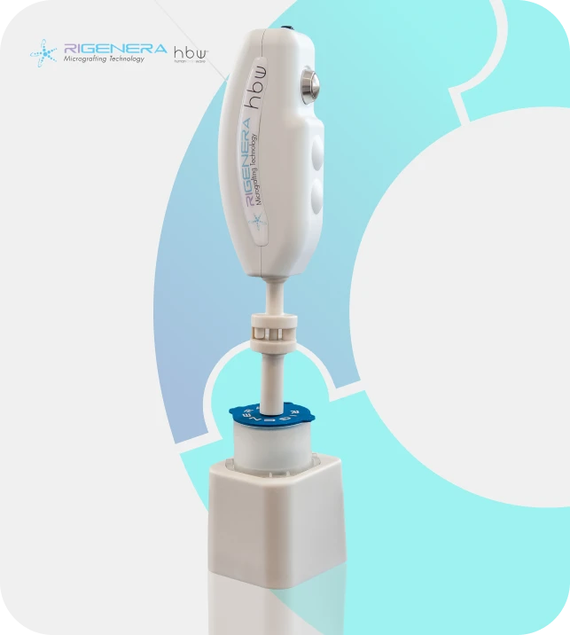 A solução de microenxerto obtida através da tecnologia Rigenera HBW estimula e desencadeia o processo de regeneração tecidual, por meio de uma única aplicação e sistema on point.