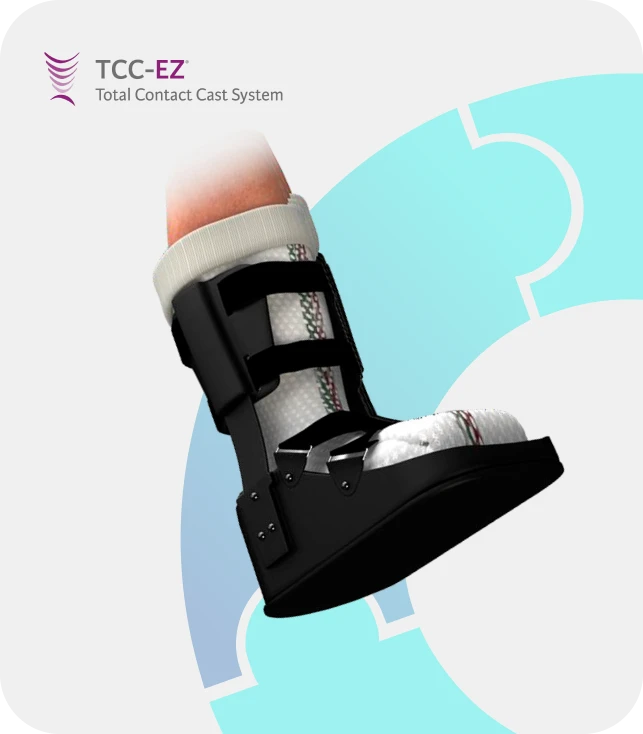 O TCC-EZ é um dispositivo “offloading” para redução da força na região plantar e distribuição dessa força na região da panturrilha, melhorando a capacidade vascular da extremidade e otimizando a cicatrização de lesões comuns nesses pacientes.